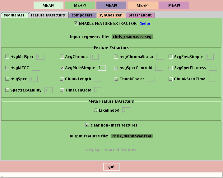 feature extractors: we will sort the file by pitch, so make sure that only "AvgPitchSimple" is