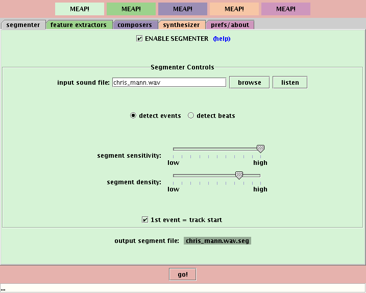 segmenter: chris_mann.wav should already be set as the input sound file. If not click on the